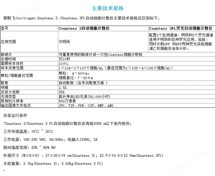 檢測方式 | 明場(Countess™ 3);明場+熒光(Countess™ 3 FL) |